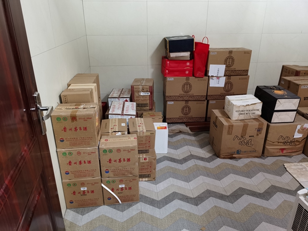 圖為鄧寄鵬收受的部分高檔白酒。(江西省紀委監委供圖)