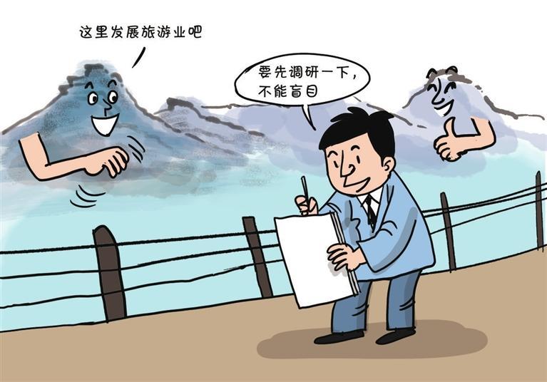 老王剛上任某區縣“一把手”,準備“大干一番”。他未經調研論證,就決定“換道超車”,舉債發展旅游業,新建歌劇院、滑雪場等一批重點項目。同事提醒他,當地財政吃緊、生態脆弱,上馬這些項目要慎重。老王對此不屑一顧,認為同事膽子太小、思維守舊,發展經濟就是要有“魄力”。他的做法對嗎?