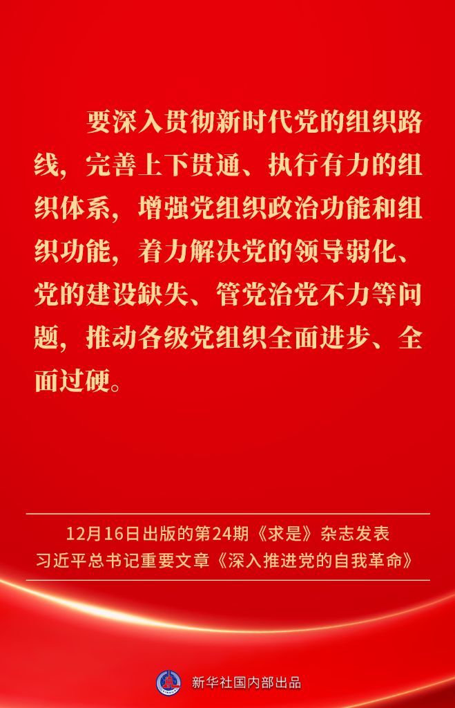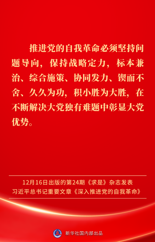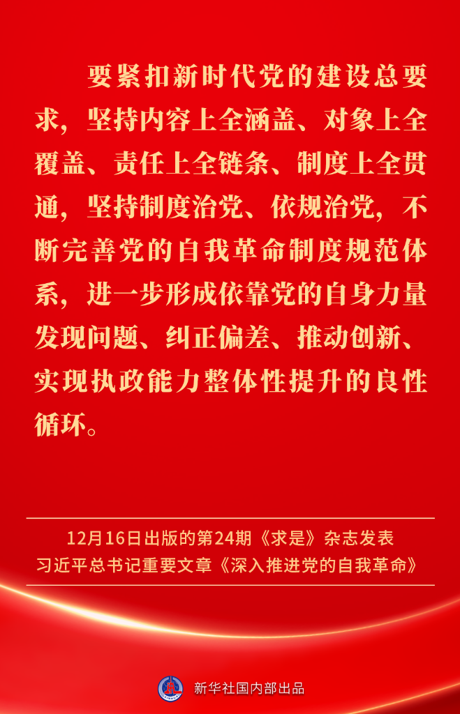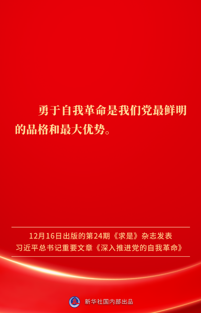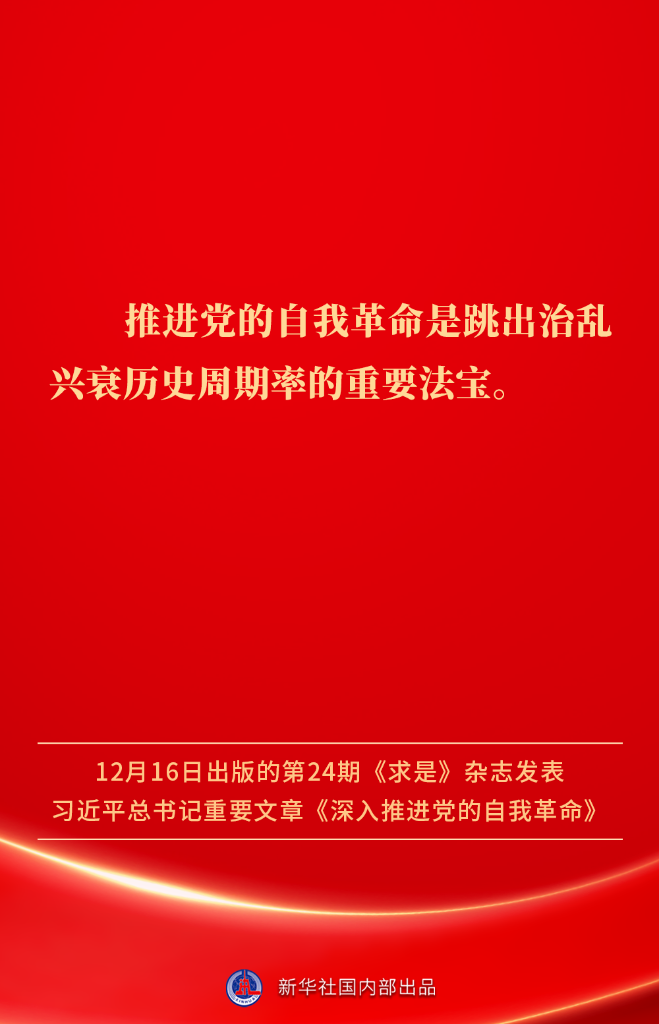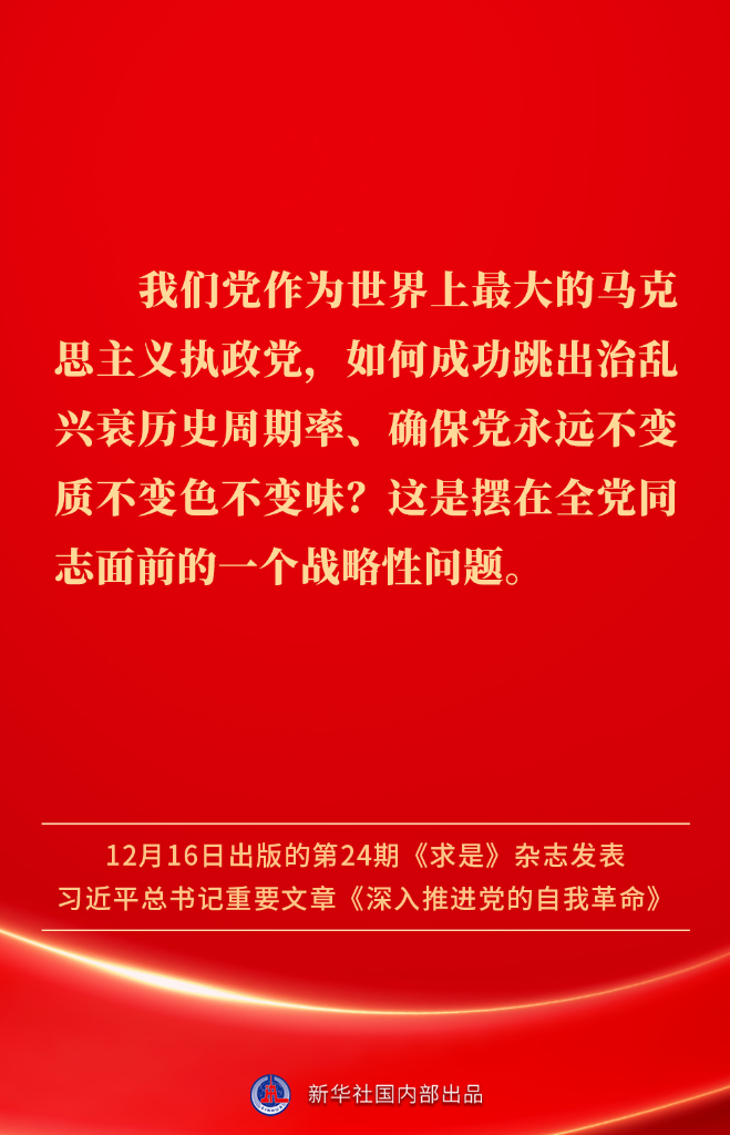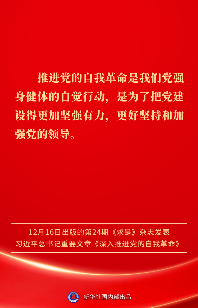 12月16日出版的第24期《求是》雜志發(fā)表習(xí)近平總書記重要文章《深入推進黨的自我革命》。我們黨為什么要自我革命、為什么能自我革命、怎樣推進自我革命?習(xí)近平總書記這樣闡述——