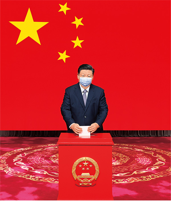 2021年11月5日,中共中央總書記、國家主席、中央軍委主席習近平在北京市西城區中南海選區懷仁堂投票站參加區人大代表選舉投票。 新華社記者 鞠鵬/攝
