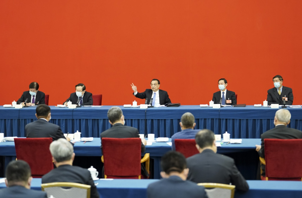 3月6日,中共中央政治局常委、國務院總理李克強看望出席全國政協(xié)十三屆五次會議的經(jīng)濟界委員并參加討論。新華社記者 殷博古 攝