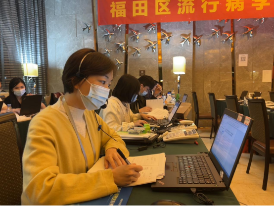 疫情發生以來,全市紀檢監察干部在履行好監督職責的同時,積極支援疫情防控一線工作,在大戰大考中體現紀檢監察人的擔當和作為。圖為福田區紀委監委審理室干部在流調前線指揮部對確診病例相關信息進行全流程梳理分析。(福田區紀委監委供圖)