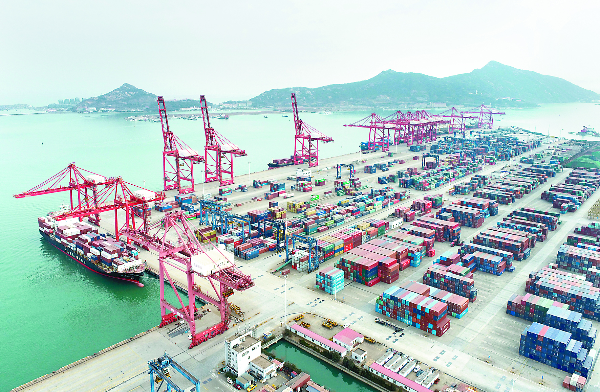 海關(guān)總署近日發(fā)布數(shù)據(jù),今年前2個(gè)月,我國(guó)貨物貿(mào)易進(jìn)出口總值6.2萬(wàn)億元,同比增長(zhǎng)13.3%。其中,出口3.47萬(wàn)億元,增長(zhǎng)13.6%;進(jìn)口2.73萬(wàn)億元,增長(zhǎng)12.9%,實(shí)現(xiàn)今年外貿(mào)穩(wěn)起步。圖為江蘇連云港港口集裝箱碼頭場(chǎng)景。新華社發(fā)(王健民 攝)