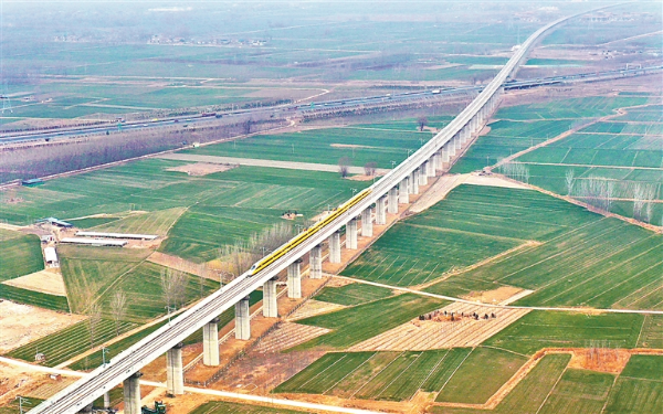 近日,濟(南)鄭(州)高鐵正式開始聯調聯試。圖為綜合檢測列車行駛在濟鄭高鐵濮陽至鄭州段區段。新華社記者 張浩然 攝
