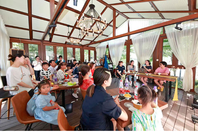 浙江省杭州市蕭山區掬星島由原來的“私人會所”轉型成為學術研討、文化展覽、市民游玩的“網紅打卡點”。圖為市民游客在島上享受下午時光。何鵑/攝
