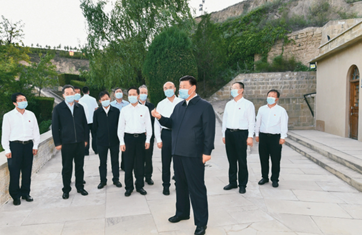 2021年9月13日至14日,中共中央總書記、國家主席、中央軍委主席習近平在陜西省榆林市考察。這是13日下午,習近平在米脂縣楊家溝革命舊址考察。 新華社記者 謝環馳/攝