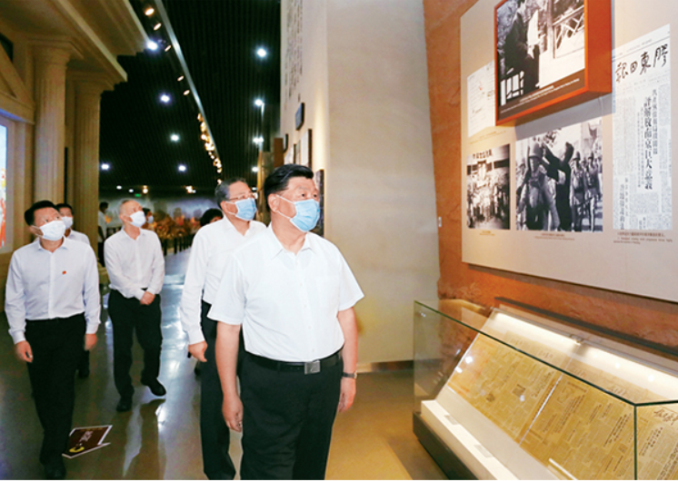 2020年8月18日至21日,中共中央總書記、國家主席、中央軍委主席習近平在安徽省考察。這是19日下午,習近平在合肥市參觀渡江戰役紀念館,重溫革命歷史,緬懷革命先輩的豐功偉績。 新華社記者 鞠鵬/攝