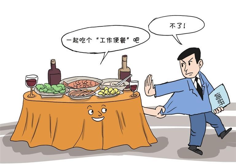 市直單位領導老高一行結束調研時,被調研單位負責人挽留他們:“都要到飯點了,回去路途遙遠,附近剛好有家私房菜館,一次只接待一桌,位置隱蔽不易發(fā)現(xiàn),食材新鮮、酒水高檔,反正能用公款報銷,要不一起去吃個‘工作便餐’。”老高有些猶豫,是盛情難卻赴宴還是予以謝絕返程呢?