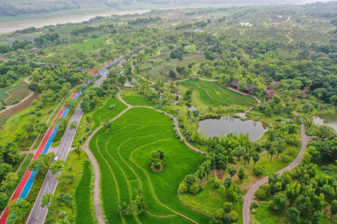 這是2023年7月3日拍攝的長江上游最大的江心島重慶廣陽島景色(無人機照片)。廣陽島曾一度被規(guī)劃為商業(yè)地產(chǎn)開發(fā)區(qū)。隨著長江大保護的啟動,當?shù)卣凑铡伴L江風景眼、重慶生態(tài)島”的定位重新規(guī)劃,開始系統(tǒng)修復生態(tài)。如今廣陽島躋身全國“綠水青山就是金山銀山”實踐創(chuàng)新基地。