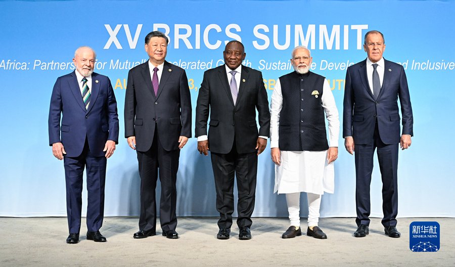 當(dāng)?shù)貢r間8月23日上午,金磚國家領(lǐng)導(dǎo)人第十五次會晤在約翰內(nèi)斯堡杉藤會議中心舉行。南非總統(tǒng)拉馬福薩主持會晤。中國國家主席習(xí)近平、巴西總統(tǒng)盧拉、印度總理莫迪和俄羅斯總統(tǒng)普京(線上)出席。五國領(lǐng)導(dǎo)人圍繞“金磚與非洲:深化伙伴關(guān)系,促進彼此增長,實現(xiàn)可持續(xù)發(fā)展,加強包容性多邊主義”主題,就金磚合作及共同關(guān)心的重大國際問題深入交換意見,達成廣泛共識。