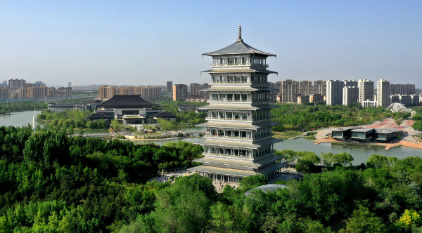 位于西安浐灞生態(tài)區(qū)的長(zhǎng)安塔(2023年4月16日攝,無人機(jī)照片)。新華社記者 劉瀟 攝