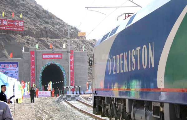 中鐵隧道集團(tuán)承擔(dān)的烏茲別克斯坦安格連-帕普鐵路卡姆奇克隧道全隧貫通(2016年2月27日攝)。新華社記者 沙達(dá)提 攝